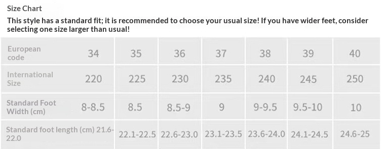 Sizes: 35, 36, 37, 38, 39, 40, 41