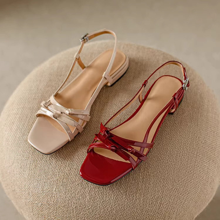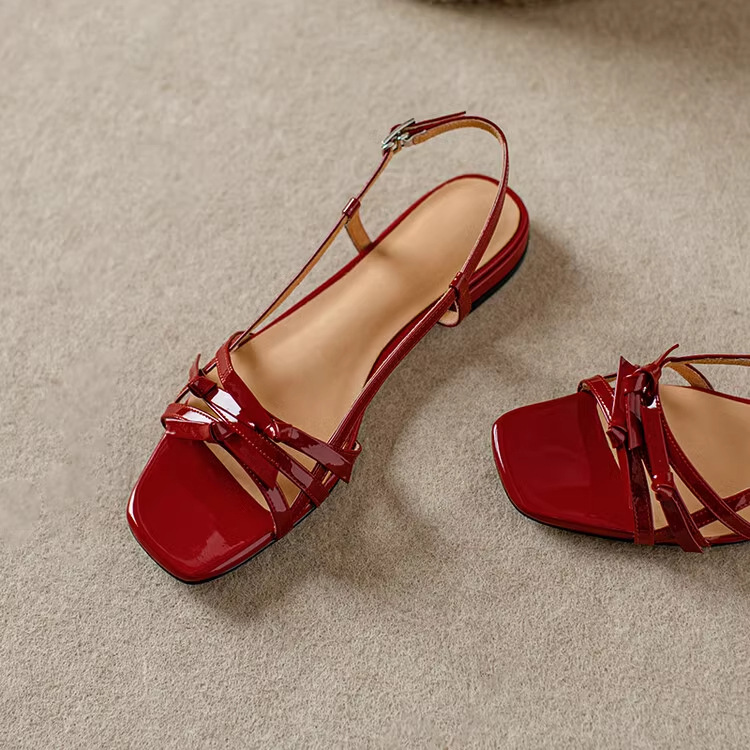 French-style Square-toe Bow Flat Sandals For Women