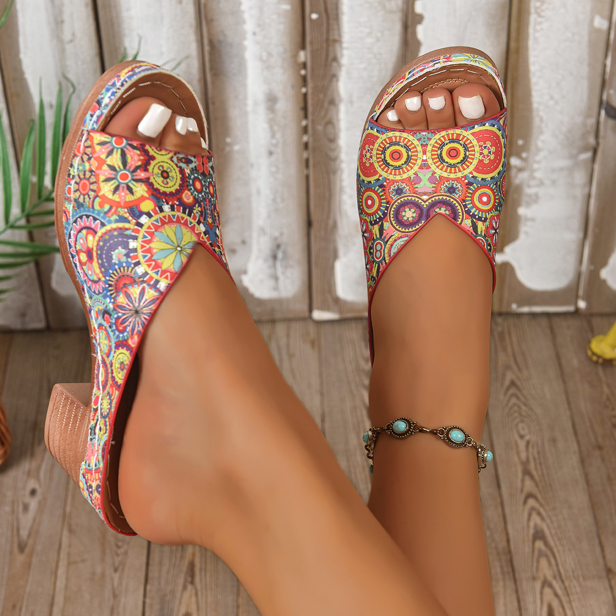 Features: Fish Mouth, Buckle-fastened, Lightweight, Chunky-heel