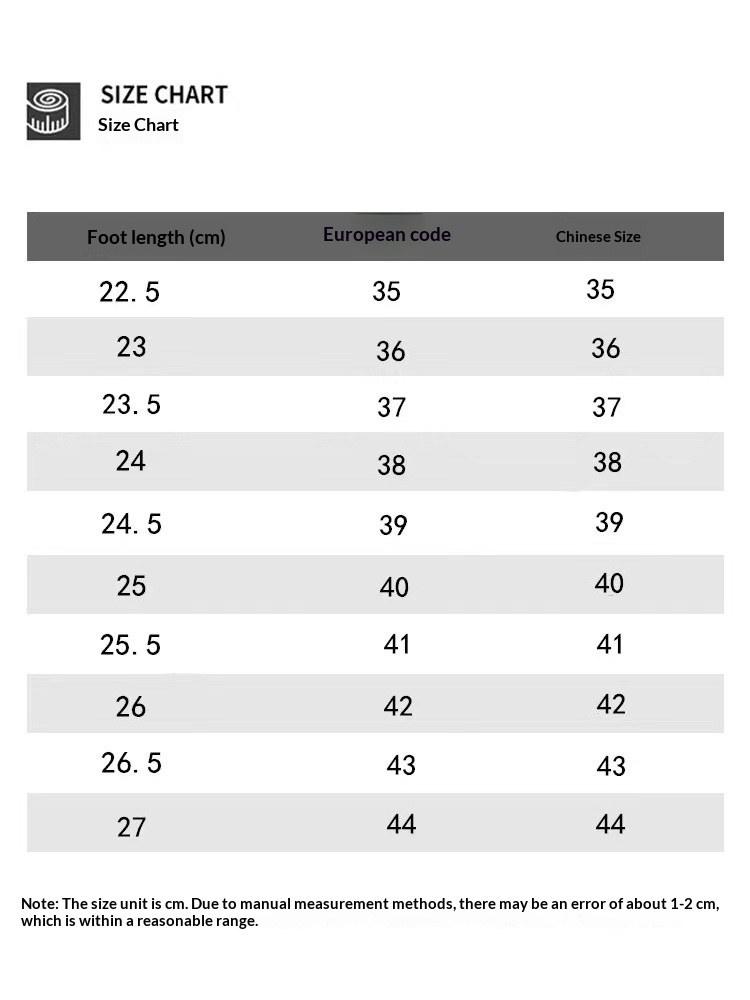Sizes: 35, 36, 37, 38, 39, 40, 41, 42, 43, 44